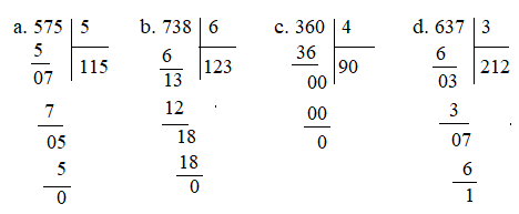 a. 575 : 5 b. 738 : 6 c. 360 : 4 d. 637 : 3