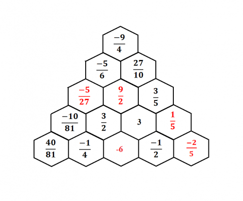 Điền số hữu tỉ thích hợp vào các ô trống trong hình tháp dưới đây theo quy tắc đã chỉ ra