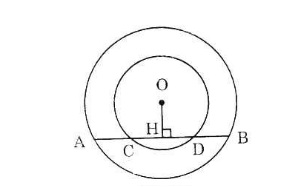 Cho hai đường tròn đồng tâm O. Dây AB của đường tròn lớn cắt đường tròn nhỏ ở C và D.