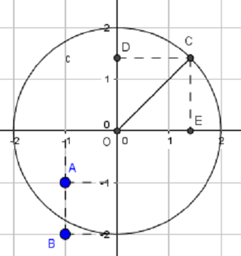 đối với đường tròn tâm O bán kính 2.
