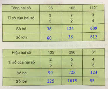 - Giải toán VNEN 4 bài 110: Ôn tập về tìm hai số biết tổng (hiệu) và tỉ số của hai số đó