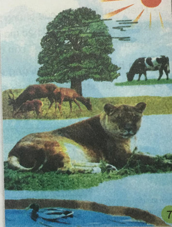 - Con hươu: lấy vào cơ thể cỏ, lá cây, nước uống, khí ô xi và thải ra bên ngoài chất cặn bã, nước tiểu và khí các-bô-níc