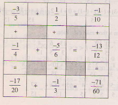 Ta thực hiện phép cộng lần lượt ở từng hàng và từng cột sau đó điền kết quả vào các ô trống tương ứng.