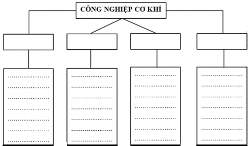 Dựa vào SGK và các kiến thức đã học, em hãy điền vào chỗ trống và sơ đồ những nội dung phù hợp về ngành công nghiệp cơ khí