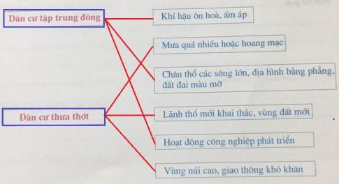 Em hãy ghép tên các khu vực phân bố dân cư vào các địa bàn tương ứng: