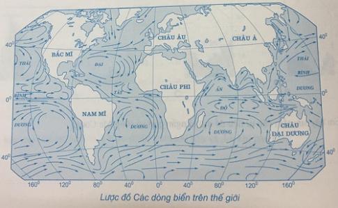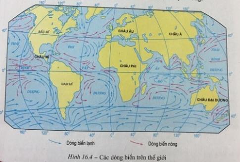 Dựa vào lược đồ Các dòng biển trên thế giới hình 16.4 SGK ban chuẩn hoặc hình 22.4 SGK ban nâng cao, em hãy dùng bút màu đỏ để tô lên các dòng biển nóng ở hình dưới đây.