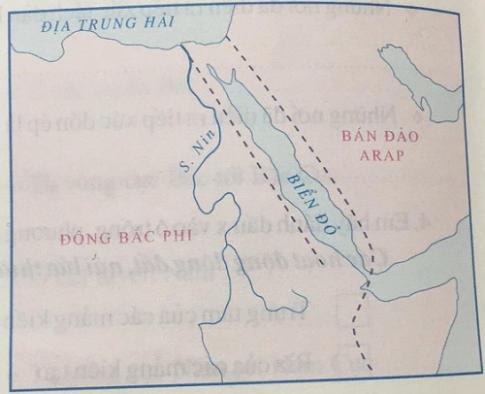 Trên lược đồ đã xảy ra hiện tượng đứt gãy do vận động kiến tạo theo phương nằm ngang, hình thành nên địa hào ngập nước Biển Đỏ.