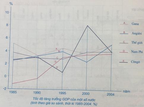 - Nhìn chung trong giai đoạn từ năm 1985 đến năm 2004, một số nước châu Phi có tốc độ tăng GDP tương đối cao như An-ghê-ri (5,2% năm 2004)