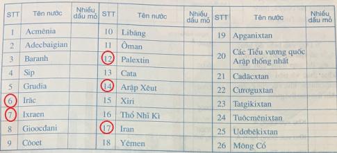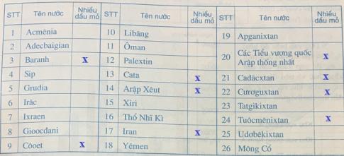 - Đánh dấu X vào ô trống trong bảng thể hiện những quốc gia có nhiều tài nguyên dầu mỏ.