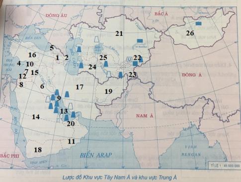 Điền kí hiệu tên nước theo số thứ tự (trong bảng sau) vào lược đồ trống.