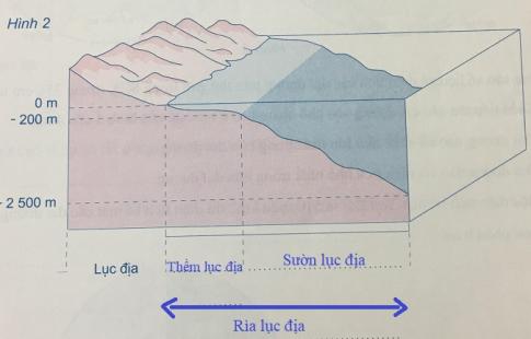 Em hãy điền vào chỗ chấm (...) tên của các bộ phận: Thềm lục địa, sườn lục địa, rìa lục địa