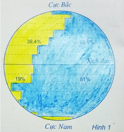 - Tô màu vào diện tích mà em cho là thể hiện tỉ lệ lục địa, tô màu xanh vào diện tích mà em cho là thể hiện tỉ lệ đại dương.