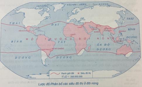 Dựa vào lược đồ “Phân bố các siêu đô thị ở đới nóng”, em hãy lựa chọn và điền tên các siêu đô thị đó vào bảng dưới đây