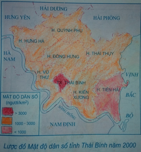 Quan sát lược đồ “Mật độ dân số tỉnh Thái Bình” trang 13 trong SGK, đối chiếu với lược đồ bên, em hãy: