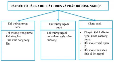 Dựa vào nội dung SGK và kiến thức đã học, em hãy hoàn chỉnh sơ đồ các yếu tố đầu vào của phát triển và phân bố công nghiệp.