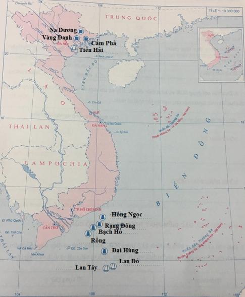 Dựa vào nội dung SGK và kiến thức đã học, hãy điền vào chỗ chấm (…) ở lược đồ sau tên các mỏ than, dầu mỏ, dầu khí tự nhiên đang được khai thác.