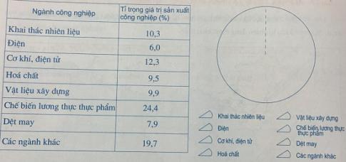 Dựa vào bảng số liệu cơ cấu giá trị sản xuất công nghiệp năm 2002 dưới đây, em hãy vẽ biểu đồ hình tròn để thể hiện rõ cơ cấu giá trị sản xuất công nghiệp.