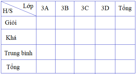 Lớp 3D có 8 học sinh giỏi, 19 học sinh khá, 3 học sinh trung bình