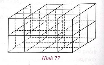 iii) Một hình hộp chữ nhật có hai cạnh đáy lần lượt bằng 3cm và 4cm, chiều cao bằng 2cm. Chia hình hộp thành các hình lập phương cạnh 1cm (h.77). Em hãy cho biết số hình lập phương cạnh 1cm trong hình hộp chữ nhật.