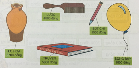 - Trong các đồ vật trên, đồ vật nào có giá tiền ít nhất? Đồ vật nào có giá tiền nhiều nhất?
