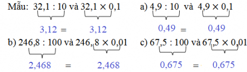 Giải vở bài tập toán 5 trang 80 bài 65: Chia một số thập phân cho 10, 100, 1000…