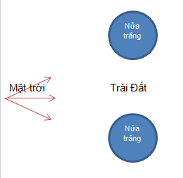 Hãy vẽ sơ đồ các vị trí của Mặt Trời, Mặt Trăng và Trái Đất khi chúng ta nhìn thấy một nửa Mặt Trăng