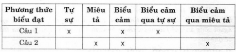Câu 3: (Trang 127 - SGK Ngữ văn 7 tập 1)Kẻ lại bảng sau và đánh dấu X vào ô mà em cho hợp lí