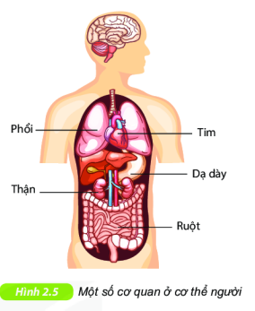 1. Quan sát hình 2.5 và xác định vị trí một số cơ quan trong cơ thể người.