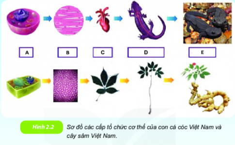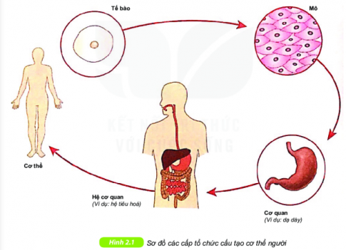 1. Quan sát hình 2.1 viết sơ đồ thể hiện mối quan hệ giữa các cấp tổ chức của cơ thể từ thấp đến cao
