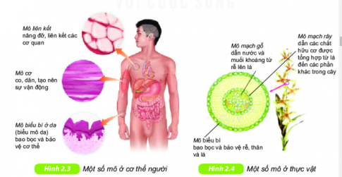 Quan sát hình 2.3 và 2.4 nêu một số mô ở người và ở thực vật