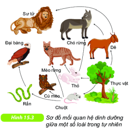1. Quan sát hình 15.3 và cho biết điều gì sẽ xảy ra nếu loài sau trong hình bị giảm số lượng hoặc biến mất.