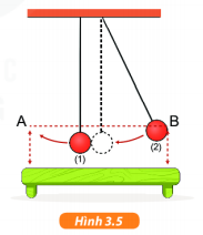 Chuẩn bị: Hai con lắc (gồm 2 quả cầu giống hệt nhau, treo bằng hai dây nhẹ dài bằng nhau), giá treo cố định, thước mét, tấm bìa đánh dấu hai điểm A, B có cùng độ cao (hình 3.5)