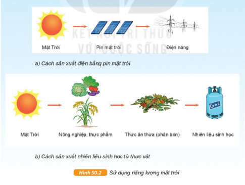 b. Năng lượng ánh sáng từ Mặt Trời có thể được sử dụng để sản xuất nhiên liệu từ thực vật bằng cách nào? (Hình 50.2b)