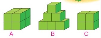 a) Hình có số khối lập phương nhỏ nhiều nhất là A
