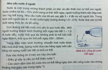 - Các cách đảm bảo đủ nước cho cơ thể hằng ngày (em nên uống nước vào những khoảng thời gian nào trong ngày?).
