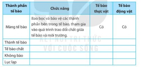 [KNTT] Giải SBT KHTN 6 bài 19: Cấu tạo và chức năng các thành phần của tế bào