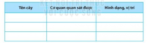 b) Từ kết quả quan sát các cơ quan của một số cảy, em hãy hoàn thành bảng sau: