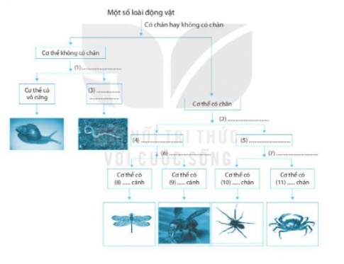 Câu 26.4. Em hãy hoàn thành những thông tin còn thiếu trong sơ đồ phân loại khoá lưỡng phân để phân loại một số loài động vật sau: