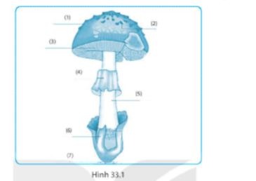 Câu 33.3. a) Nêu tên các thành phần cấu tạo của một nấm quả trong Hình 33.1.