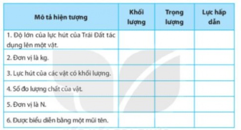 [KNTT] Giải SBT KHTN 6 bài 43: Trọng lượng, lực hấp dẫn