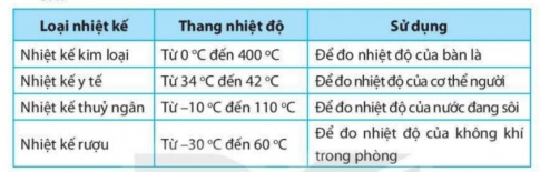 Phải dùng loại nhiệt kế nào để đo nhiệt độ của bàn là, cơ thể người, nước đang sôi, không khi trong phòng?