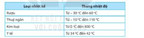 Câu 8.4. Bảng dưới đây ghi tên các loại nhiệt kế và nhiệt độ ghi trên thang đo của chúng.