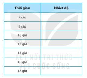 - Tiến hành đo nhiệt độ nơi bạn ở và điền nhiệt độ đã đo ở thời điểm đó vào bảng theo các khung giờ tương ứng