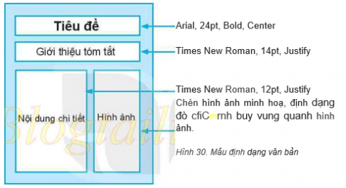 3. Nội dung chi tiết: mỗi địa danh, đặc sản hay nét văn hoá đặc sắc của quê hương em được trình bày trên 1 đến 2 trang. Định dạng văn bản có thể theo hướng dẫn ở Hình 30:
