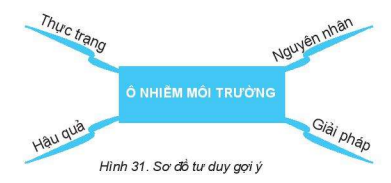 Tạo sơ đồ tư duy: Xác định chủ đề chính, chủ đề nhánh. Ví dụ, với đề tài ô nhiễm môi trường có thể xây dựng bản đồ tư duy theo gợi ỷ Hình 31: