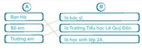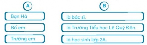 Câu 7. Nối từ ngữ ở cột A với từ ngữ ở cột B để tạo câu giới thiệu.