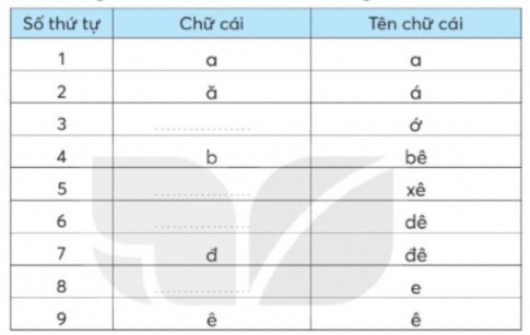 Câu 4. Điền những chữ cái còn thiếu vào chỗ trống.