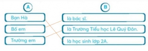 Câu 7. Nối từ ngữ ở cột A với từ ngữ ở cột B để tạo câu giới thiệu.