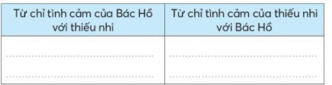 | Từ chỉ tình cảm Bác Hồ với thiếu nhi | Từ chỉ tình cảm thiếu nhi với Bác Hồ |