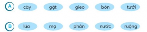 Câu 6. Nối từ ở dòng A với từ phù hợp ở dòng B để tạo từ ngữ chỉ công việc của người nông dân.